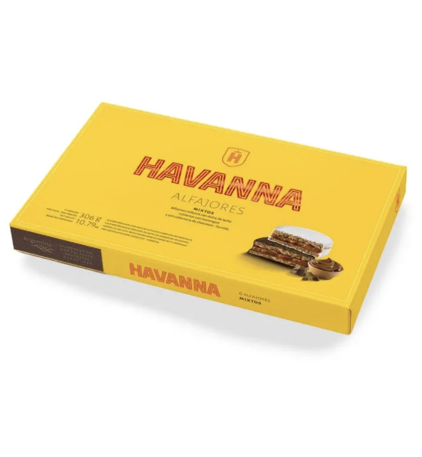 Caja de Alfajor Mixto: incluye 3 Alfajores rellenos con dulce de leche cubiertos con merengue y 3 alfajores rellenos con dulce de leche con cobertura de chocolate.