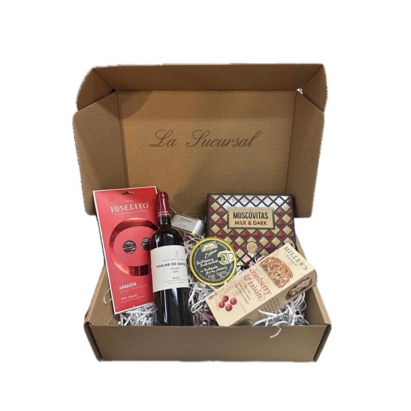 - Uma caixa de Moscovitas MILK & DARK (Peso líquido: 320g. Ingredientes: 45% de cobertura de chocolate, açúcar, manteiga de cacau, leite desnatado em pó, pasta de cacau, lactosueiro em pó, matéria gorda láctea anidra, leite inteiro em pó, emulgente, amêndoa marcona selecionada (17%), nata líquida, farinha de trigo e baunilha. )